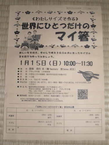 「福井市市民生活部男女共同参画課のものですけれども、お箸作りの講師として教室をしてみませんか。」