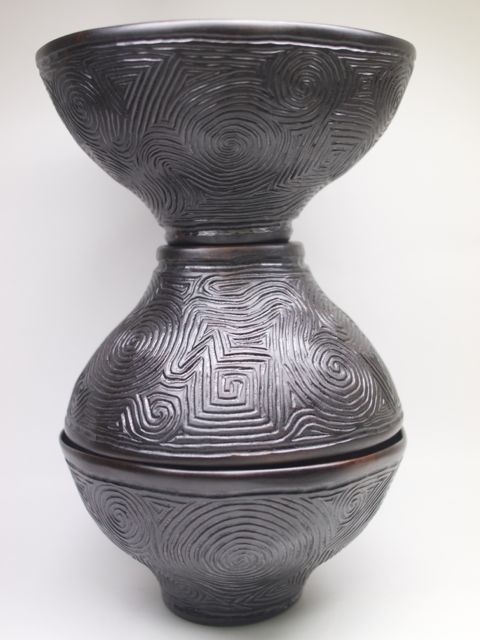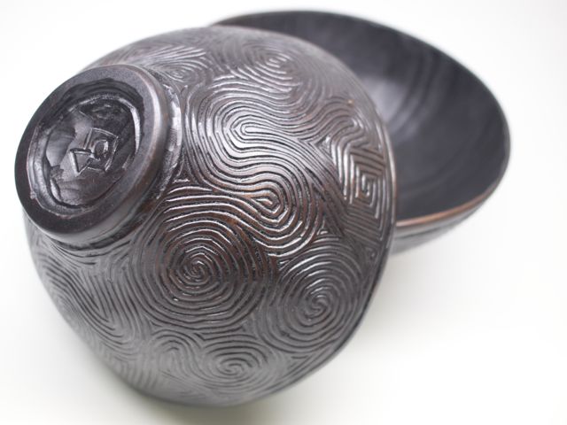 器の余白と対峙し、彫刻刀を冷静と情熱の間で思うがままに時間を忘れて走らせる。