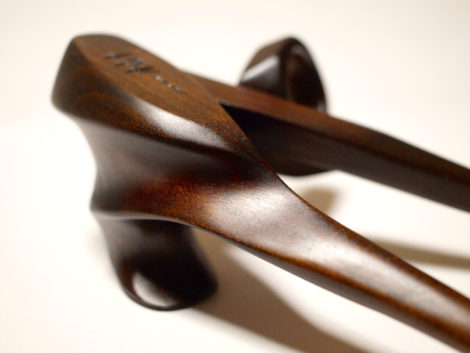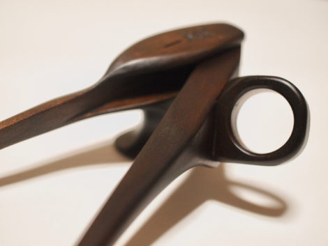 - 製作ポイント しっかりと握るチカラがあったので、お箸の本体を人差し指と中指で持てるタイプを選んだ。親指リングの角度をややたて気味にした。握りこんだ中指が親指側のお箸に当たっていたので削った。