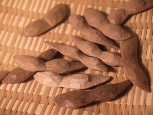 仏と豆と東北 宮bow | 2011.8.26 仙台へ行ってから、やっぱり仏さまを彫ってみたくなりました。 三十三 ちょっと女性的 三十四 凛々しい男前 三十五 ちょっと山崎邦正? 三十六 ふっくらとしてとっても優しい 三十七 ぴんと張りつめた空気感をまとう そして、東北と言えば「ずんだ」 枝まめの箸置きです。